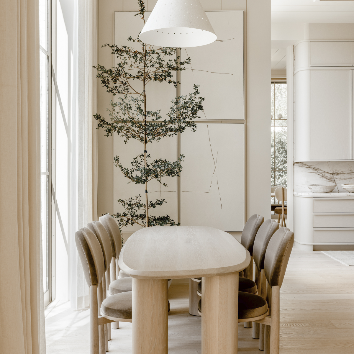 L'ampio tavolo è abbastanza grande da ospitare un pasto sontuoso e una stanza piena di risate.